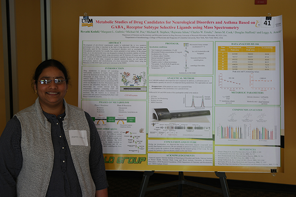 May 9th and 10th 2024: Our group participated at the UWM Chemistry & Biochemistry Symposium and presented the following posters: 1. Michelle J. Meyer “Development of A Novel Oral Treatment for Atopic Dermatitis”; 2. Michael E. Owens “Sustainable inventory management protocols and safe chemical storage”; 3. Grace M. Wheeler “A Coupling Reaction between a Benzophenone and Racemic BOC Alanine”; 4. Kayode M. Medubi “Derivatization and Optimization of a LCMS-MS method to quantify selective estrogen receptor β agonists to determine their metabolic stability, protein binding, and pharmacokinetics”; 5. Ethan T. Kowalczyk “Synthesis and Preclinical Studies of Novel Imidazodiazepines Supporting the Development of New Treatments for Inflammatory Bowel Disease and Asthma”; 6. Maya R. T. Fernando “Efficient Palladium-Catalyzed Buchwald-Hartwig Amination of Brominated Heterocycles using Pd2(dba)3 and Xphos Ligand”; 7. Mubaraq A. Toriola “Drug likeness, Absorption, Distribution, Metabolism, Elimination, and Toxicity (ADMET) Prediction and In-vivo Evaluation of CNS Effects of New PI320 Analogs; 8. Alexander B. Vincent “Efficient Palladium-Catalyzed Buchwald-Hartwig Amination of Brominated Heterocycles Using Pd2(dba)3 with XantPhos and BrettPhos Ligands”; 9. Tyler J. Haasch “Exploring the Effects of ‘ETK-II’ Compounds on Mice Motor Coordination Through Pre-Clinical Testing”; 10. Luke Langlois “Polychlorinated Biphenyls (PCBs) In Fish and Crayfish found in the Milwaukee River”.